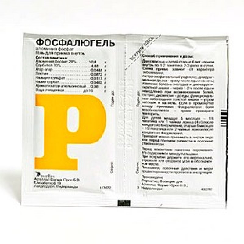 Дозы для взрослых. Фосфалюгель принимают внутрь, 1–2 пакета 2–3 раза в сутки.