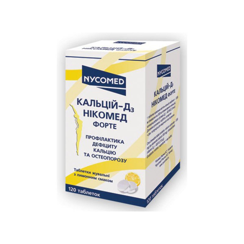 Кальций-Д3 Никомед Форте — комбинированный препарат, регулирующий обмен кальция и фосфора. Восполняет недостаток кальция и витамина D3 в организме, необходим для минерализации зубов. Кальций участвует в формировании костной ткани, минерализации зубов, свертывании крови, регулировании процессов нервной проводимости и мышечных сокращений, поддержании стабильной нервной деятельности. Применение кальция и витамина D3 препятствует увеличению выработки паратиреоидного гормона (ПТГ), который является стимулятором повышенной костной резорбции (вымывания кальция из костей). Кальций всасывается в ионизированной форме в проксимальном отделе тонкого кишечника за счет активного витамин D-зависимого транспортного механизма. Около 30% принятой дозы кальция всасывается в ЖКТ. 99% кальция концентрируется в твердых структурах организма (кости, зубы), 1% — остается во внутри- и внеклеточной среде. Примерно 50% кальция в крови находится в физиологически активной ионизированной форме. Почти 10% находится в комплексе с цитратами, фосфатами и другими анионами, оставшиеся 40% входят в состав белков, в основном — альбуминов. Кальций выводится с калом, мочой и потом.