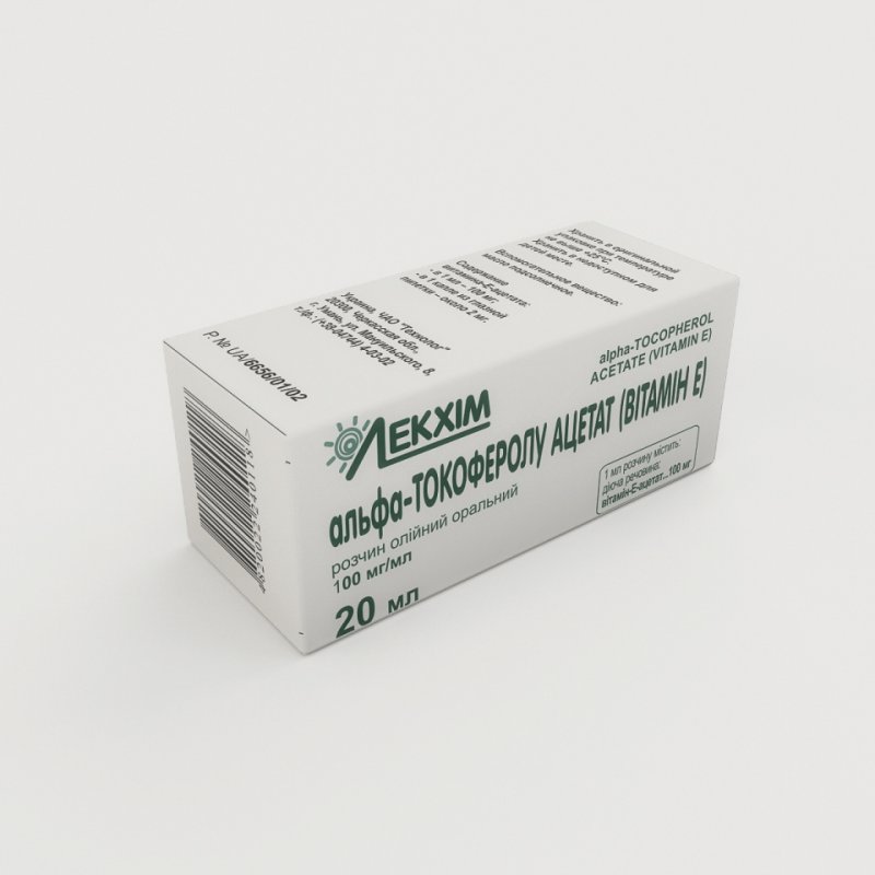 Альфа-токоферолу ацетат (вітамін Е) розчин олій. ор. 100 мг/мл по 20 мл у флак.