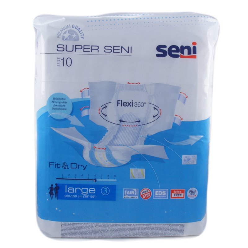 SENI SUPER Large 3 N10 – это хорошая и проверенная защита при недержании. Предназначены как для активных людей, так и для людей с ограниченными двигательными возможностями.