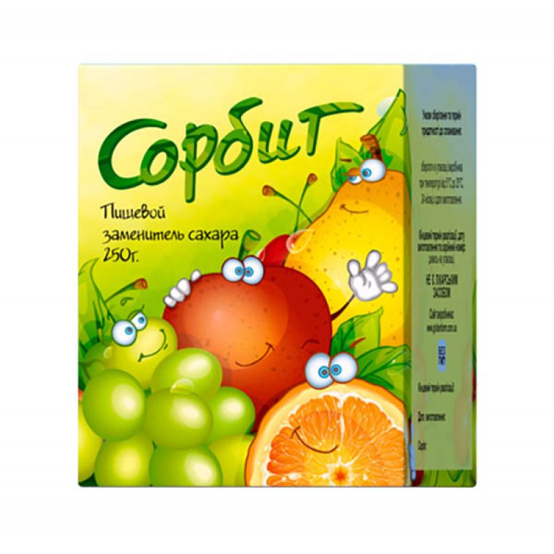СОРБИТ пор. 250г - натуральный заменитель сахара. Используется для замены сахара в напитках (чай, кофе, компоты, кисели, плодоовощные соки), при приготовлении кондитерских изделий и выпечки, варенья, джемов, а также различных диетических десертов для взрослого и детского питания, как больного, так и здорового человека.
