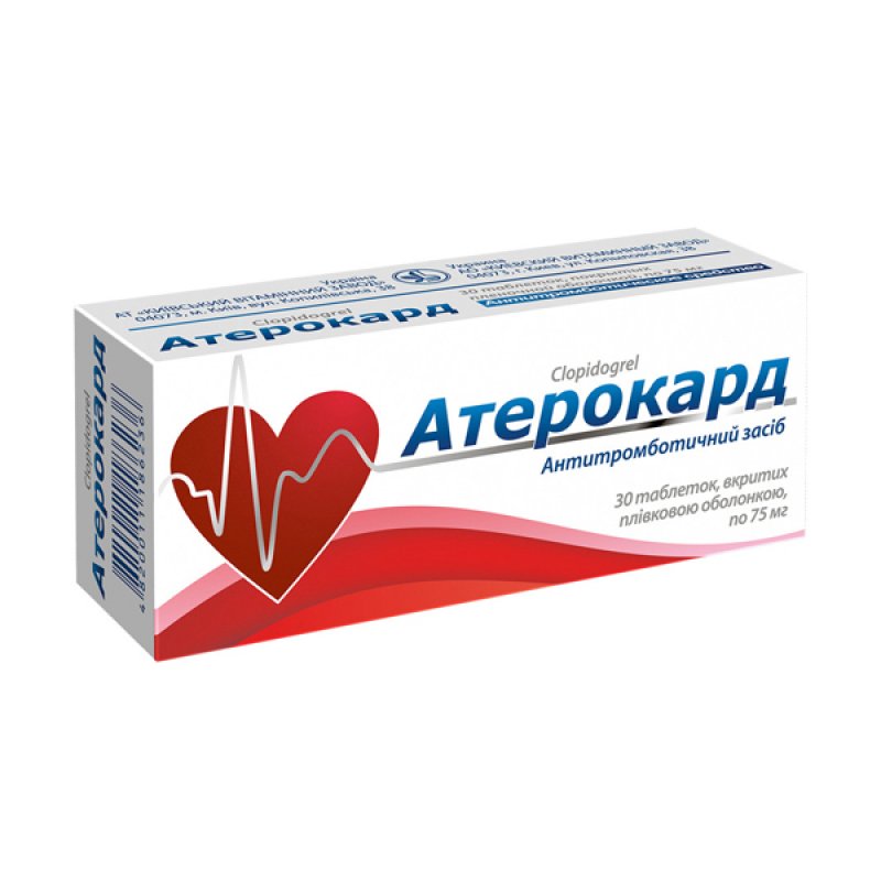 Атерокард таблетки, в/плів. обол. по 75 мг №30 (10х3)