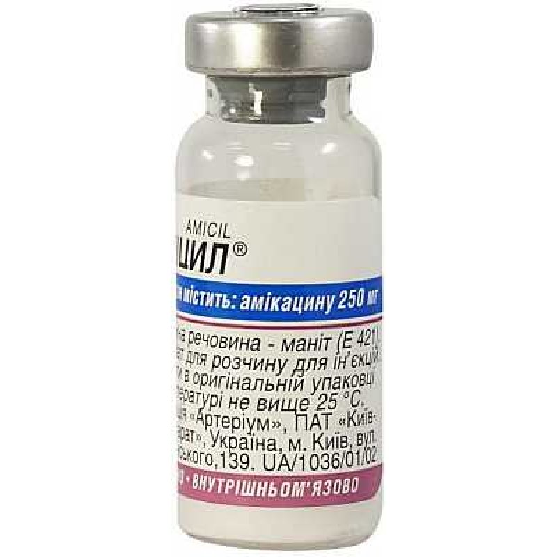 Аміцил ліофілізат для р-ну д/ін. по 250 мг №1 у флак.