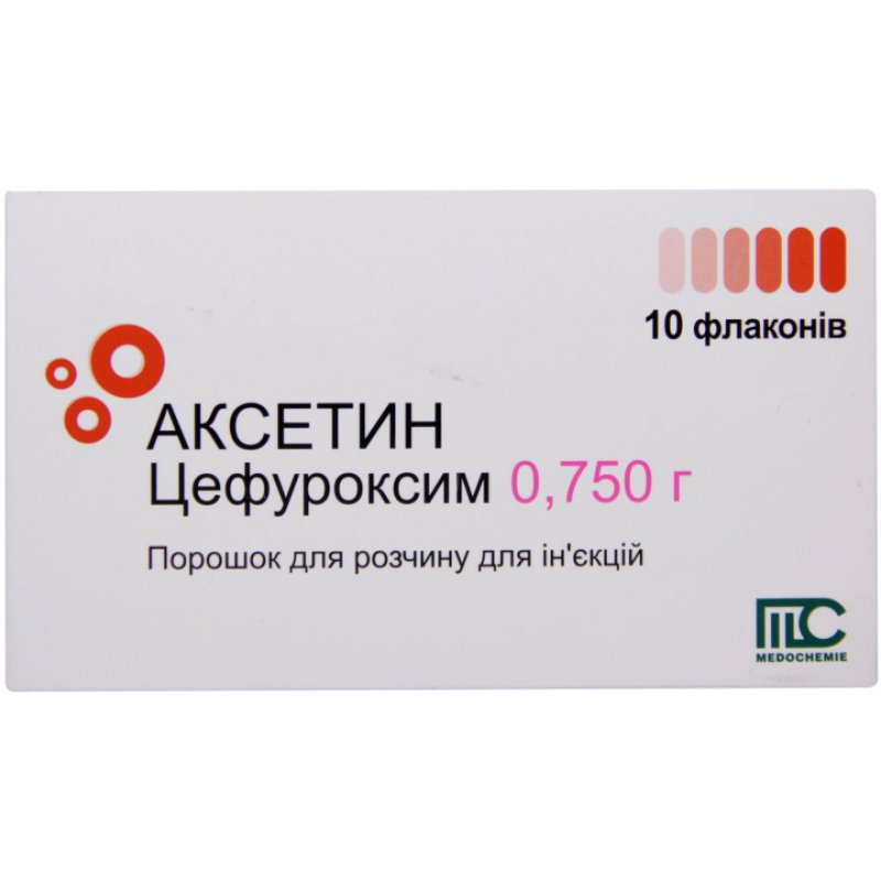 Аксетин порошок для р-ну д/ін. по 0.75 г №10 у флак.