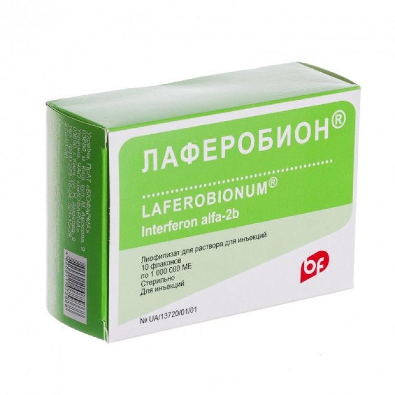 Лаферобіон ліофілізат для р-ну д/ін. по 1 млн МО №10 в амп.