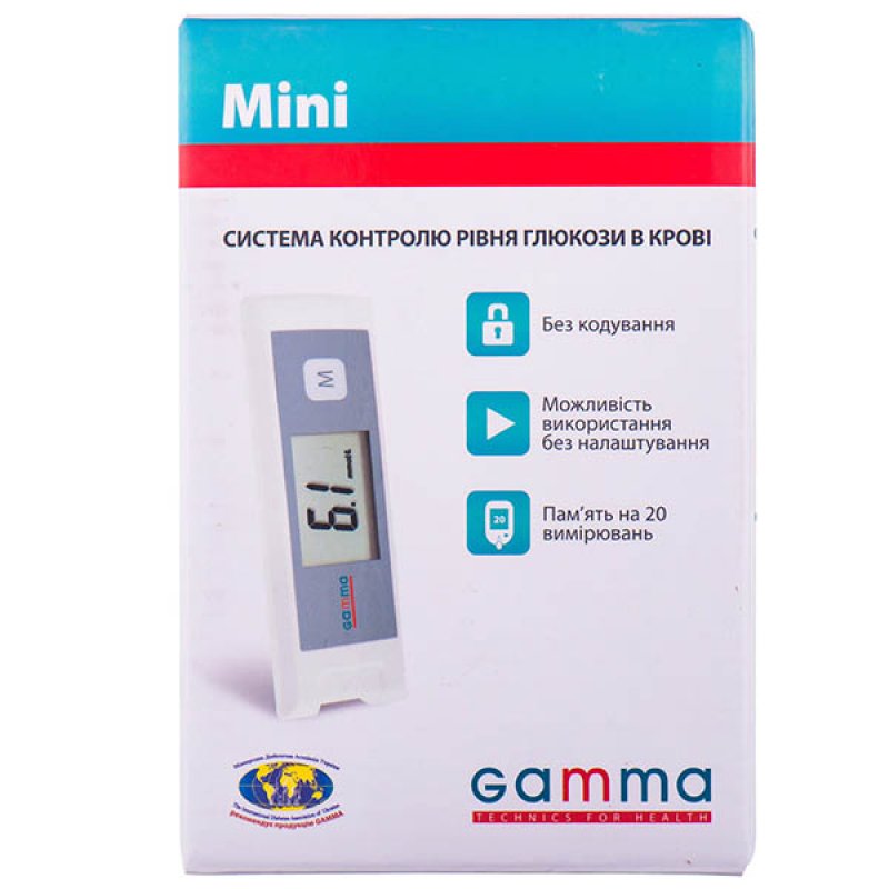 ГЛЮКОМЕТР GAMMA MINI - самый компактный глюкометр. Удобен в офисе и в дороге. Соответствует требованиям Европейского стандарта точности DIN ISO 19157