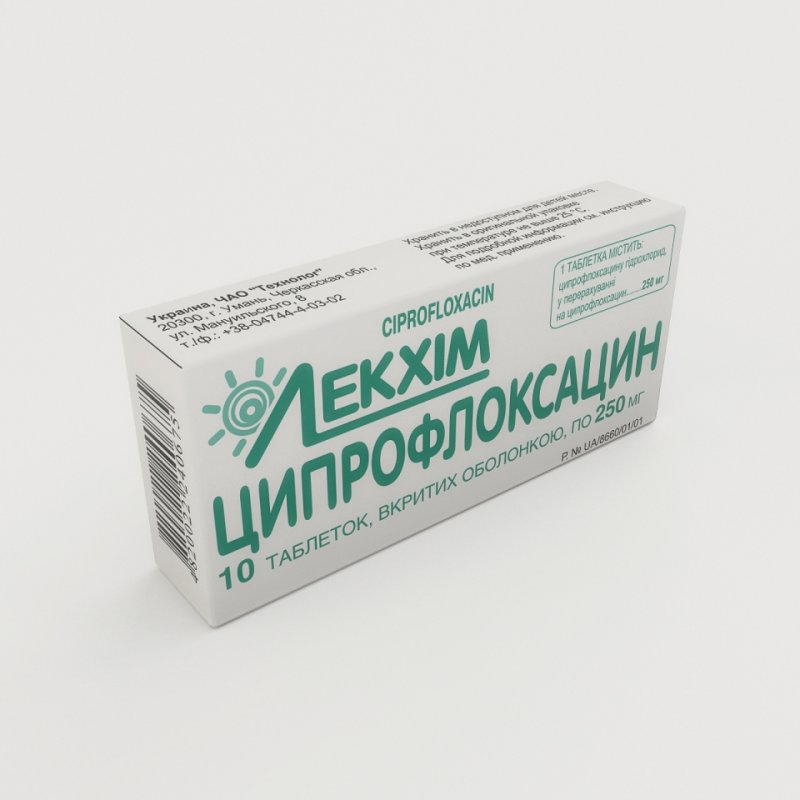 Ципрофлоксацин таблетки, в/о по 250 мг №10