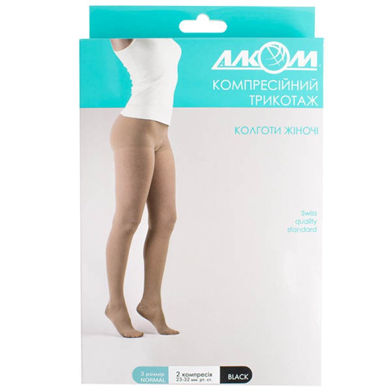 КОЛГОТЫ женск. 2 компр. черн. р.3 (7012) укрепляют стенки сосудов, обеспечивают нормальную циркуляцию крови по венам в направлении от ног к сердцу.