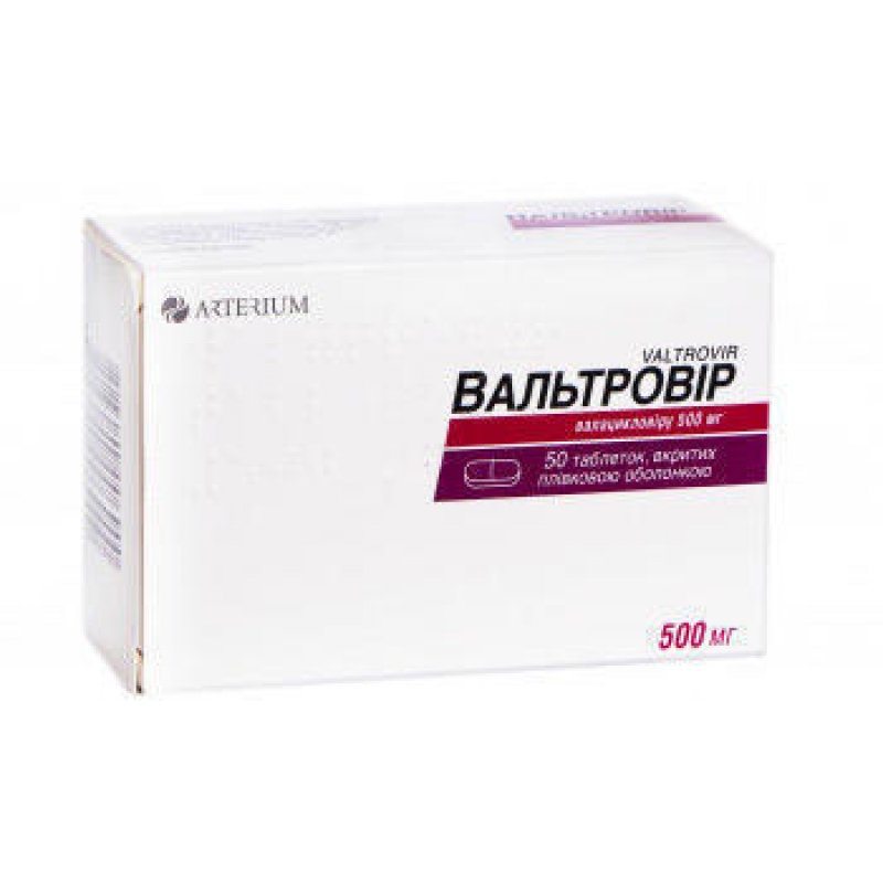 Вальтровір таблетки, в/плів. обол. по 500 мг №50 (10х5)