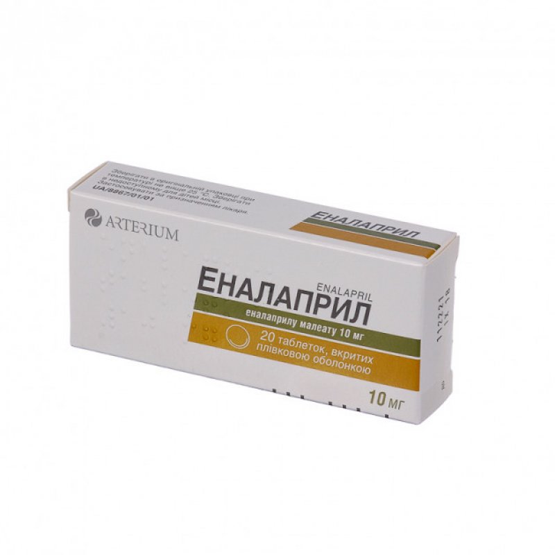 Еналаприл таблетки по 10 мг №20 (10х2)