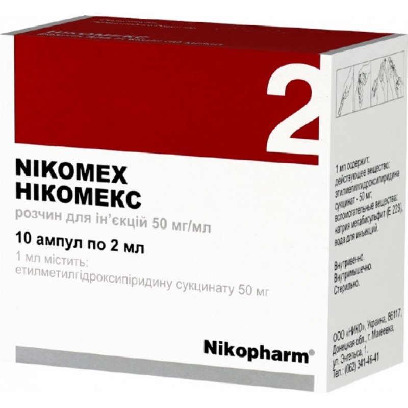 Нікомекс розчин д/ін. 50 мг/мл по 2 мл №10 (5х2) в амп.