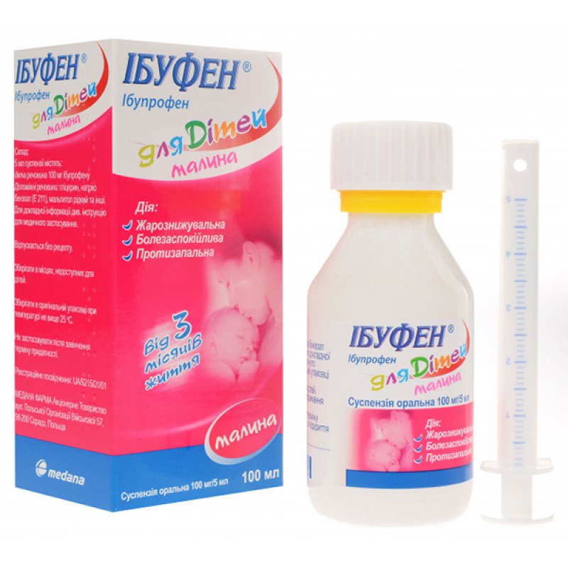 Ібуфен для дітей малина суспензія ор. 100 мг/5 мл по 100 мл у флак.