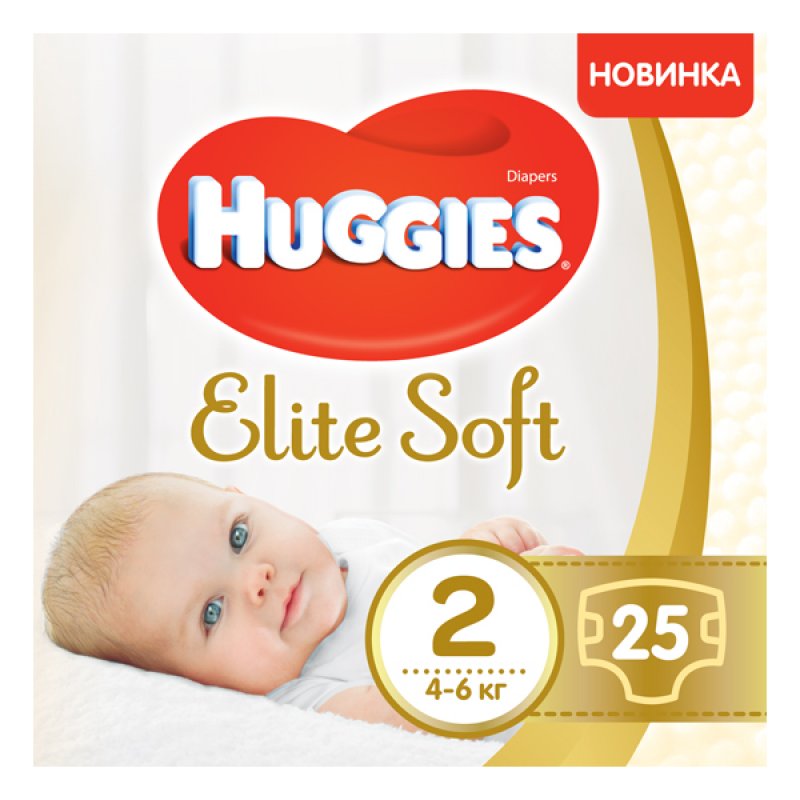 Підгузки дитячі Huggies Elite Soft, розмір 2, 4-6 кг, 25 штук