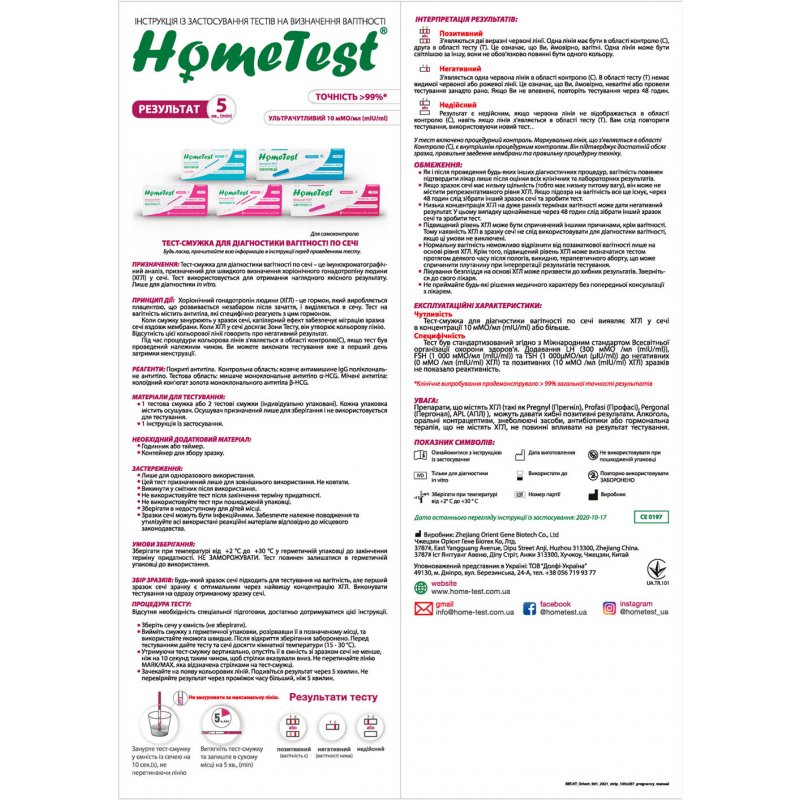 Тест-смужка HomeTest для визначення вагітності, 2 штуки