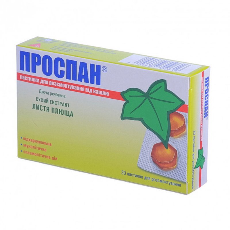 Проспан пастилки для розсмоктування від кашлю пастилки д/розсмок. по 26 мг №20 (10х2)