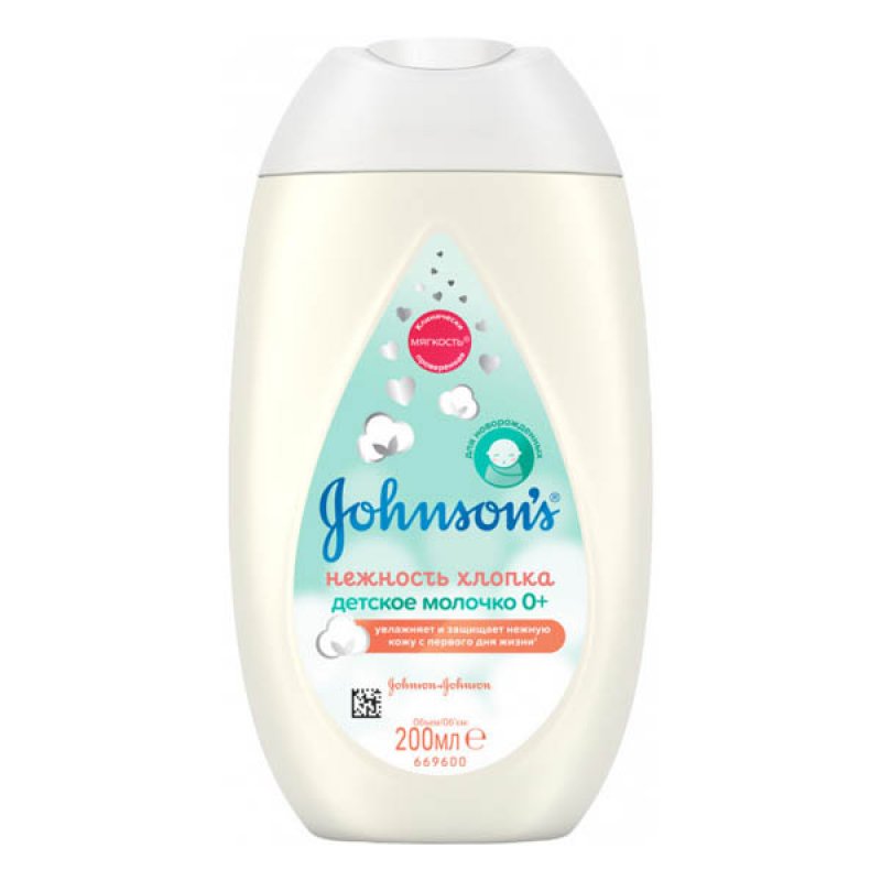 JOHNSONS Молочко для обличчя і тіла Ніжність бавовни, 200 мл