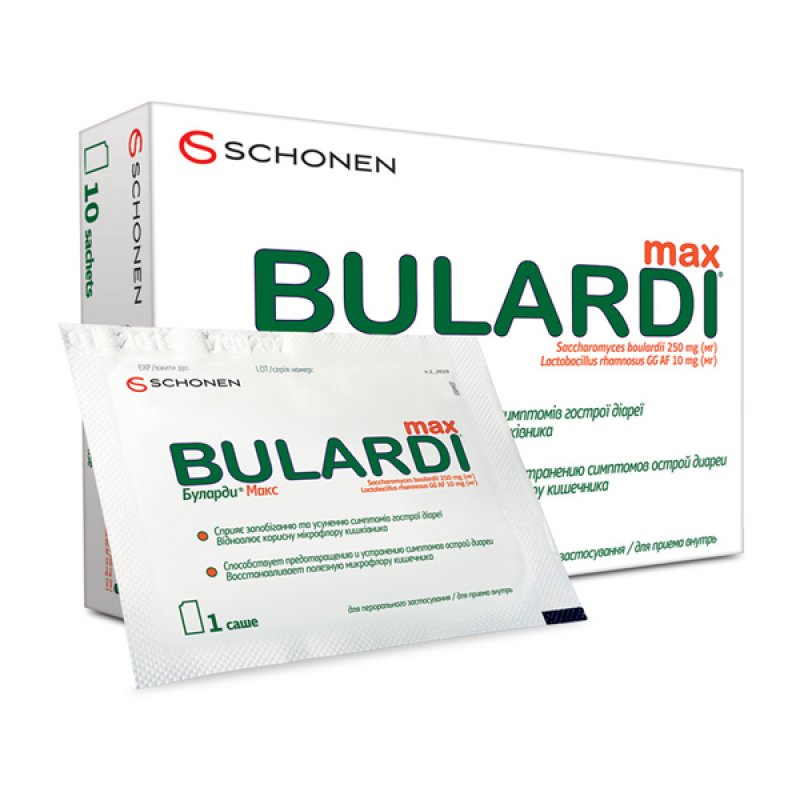 Bulardi Max / Буларди Макс - это симбиотика с противодиарейными, антимикробными, антитоксическими и иммуномодулирующими свойствами, благодаря которым проявляет высокую активность против широкого спектра патогенных и условно-патогенных микроорганизмов.