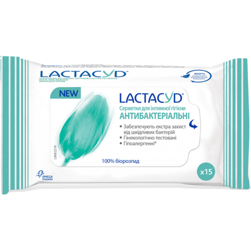 Серветки для інтимної гігієни Lactacyd Антибактеріальні, 15 штук