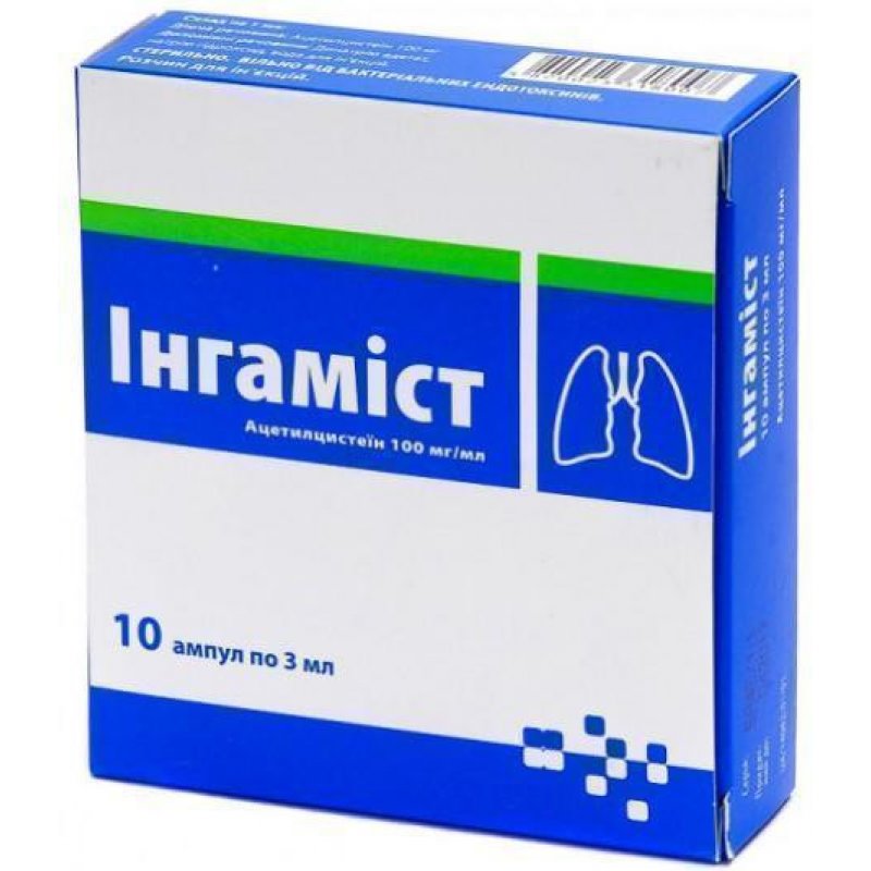 Пациентам с бронхиальной астмой, в период терапии Ингамистом необходимо находиться под контролем врача. В случае развития бронхоспазма прием ацетилцистеина следует немедленно прекратить.