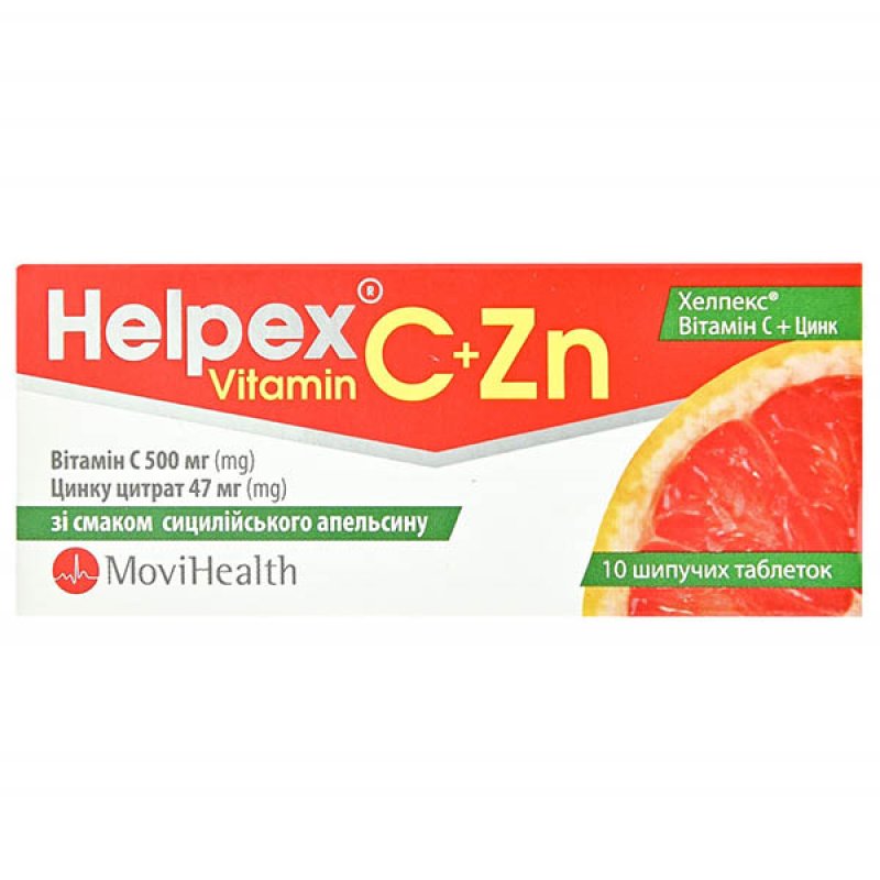 ХЕЛПЕКС ВИТАМИН С+ЦИНК табл.шип.апельсин №10 – это диетическая добавка, используется как дополнительный источник витамина С и цинка, для улучшения работы иммунной системы.