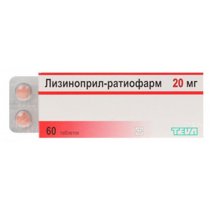 Лізиноприл-Тева таблетки по 20 мг №60 (10х6)