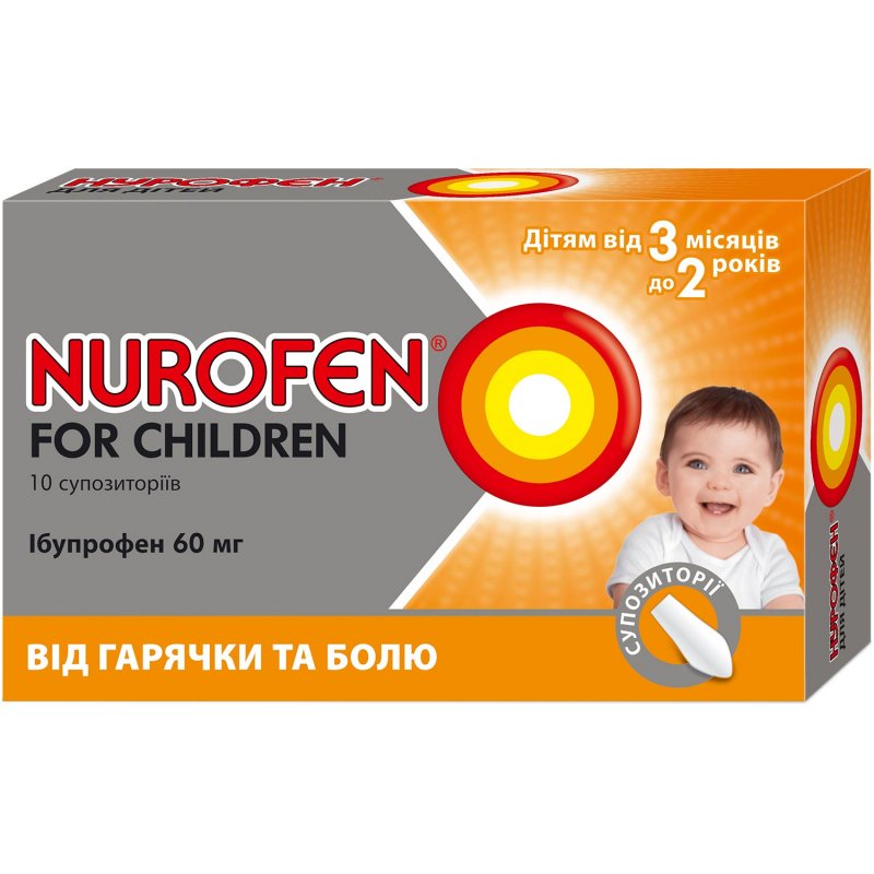 НУРОФЄН® ДЛЯ ДЕТЕЙ Суппозитории 60 мг №10 применяют для симптоматического лечения боли от легкой до умеренной интенсивности. Для симптоматического лечения лихорадки. Нурофєн® для детей, суппозитории рекомендуется использовать, когда применение пероральным путем невозможно, например, в случае рвоты. Препарат оказывает анальгезирующее, противовоспалительное и жаропонижающее действие.